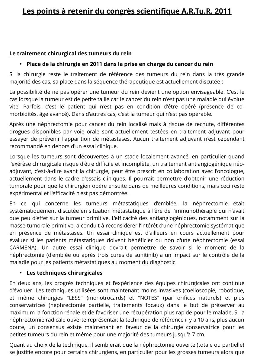 Pourquoi un congrès sur le cancer du rein ?